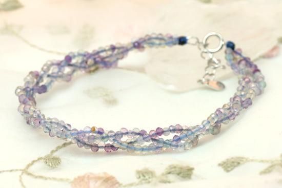 【モテるあの人から選ばれる】フローライトきらきら編みブレスレット(14〜16cm)