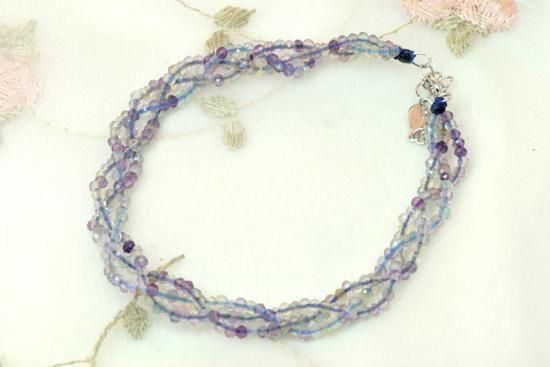 小粒のきらきらフローライトが編み込まれた、繊細な編みブレス。つけていても邪魔にならず、数珠感もありません。フローライトは持つ人の魅力を高め、ライバルが多い恋でも好きな人から選ばれるとされるパワーストーンです。天からのインスピレーションが降りてきて、嬉しいシンクロを起こしてくれるとも。ゆとり含め14〜1cmまでアジャスターで調整可能。修理不可。1点のみのご提供です。