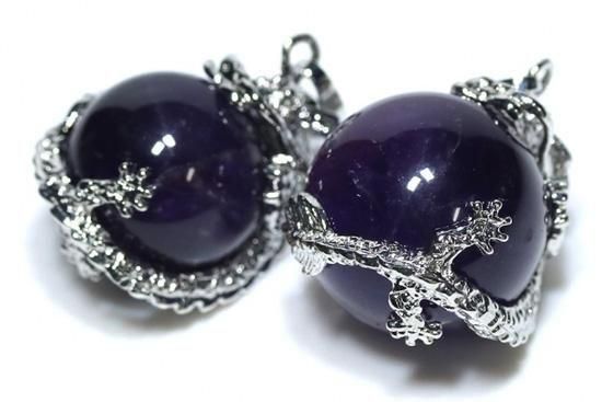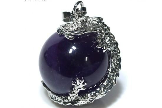 直径20ミリの大玉アメジストを五つ爪のドラゴンが抱えた、存在感あるペンダントです。ドラゴンは中国では運気上昇の象徴とされ、なかでも五爪龍はとりわけパワーが強いとされます。アメジストは持つ人の格を高め、好きな人や周りから大切に扱われるよう導きくとともに、財運を高めるともされます。※黒紐(アジャスター)付きです。1点のみのご提供です。