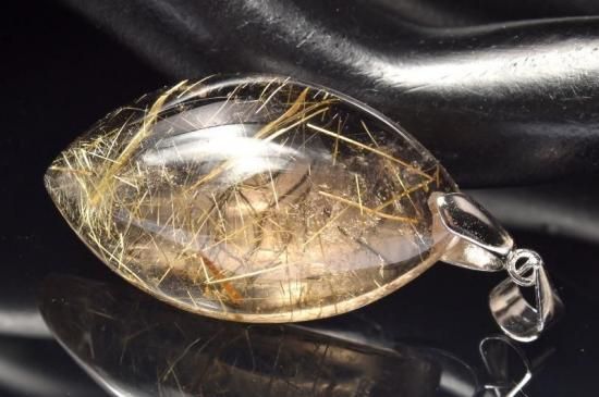 【恋愛と金運の発展・成長】ルチルクオーツ純銀リーフ形ペンダント・トップ