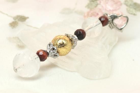 ゴールドメテオライトと、運気上昇の白龍、金運アップと制約のある恋のサポート鳳凰水晶、仕事運アップや恋愛成就に効果的なレッドタイガーアイで、スペシャル開運チャームを作ってみました。おもに金運や運勢アップにおすすめ。2点のみのご提供です。