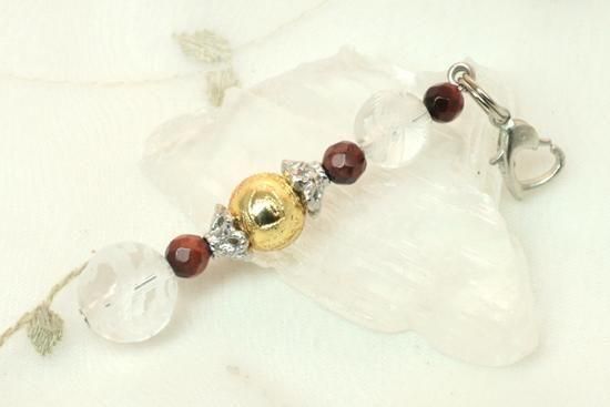 素材:白龍水晶10mm玉 鳳凰水晶8mm玉 ゴールドメテオライト8mm玉 レッドタイガーアイ4mm玉多面カット