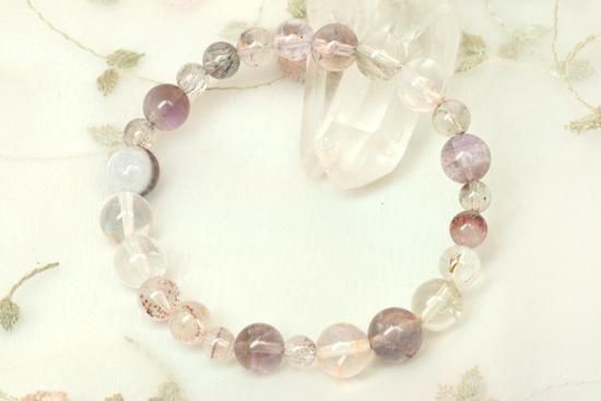 スーパーセブンとアメジストファントム、レッドヘマタイトインクオーツの3つの開運パワーストーンを組み合わせた、強力な運気上昇ブレスレット。心が折れそうなときに勇気をもらえる組み合わせです。ゆとり含め16cm、サイズ直し不可。1点のみのご提供です。