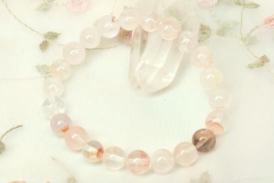 【心が折れそうな恋に】レッドヘマタイトinクオーツ8mm玉ブレスレット(16.5cm)