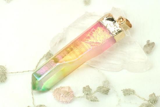 【恋愛&金運アップ/願いを叶える】レインボーオーラ水晶ペンダント・トップ