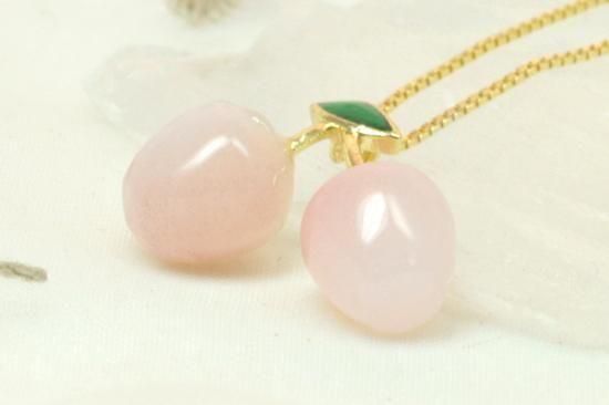 ピンクメノウは、その柔らかな色合いから、愛と心の癒しを象徴するパワーストーンです。さくらんぼなどの果実は、恋の実りを暗示します。また、人間関係を円満にするともされます。チェーン付き、1点のみのご提供です。