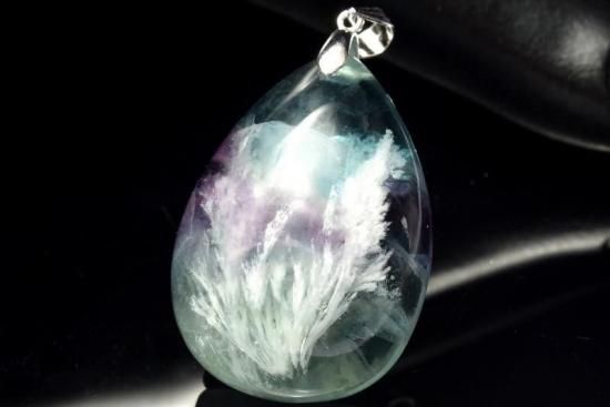 【天の力を受け取る/運の飛躍】大粒エンジェルフェザー・フローライト純銀ペンダント・トップ