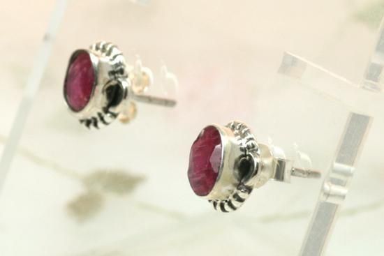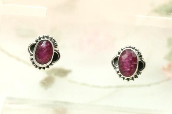 【恋の進展/仕事の発展/恋敵に勝つ】ルビー純銀きらきらオーバル形スタッフドピアス(キャッチ付)
