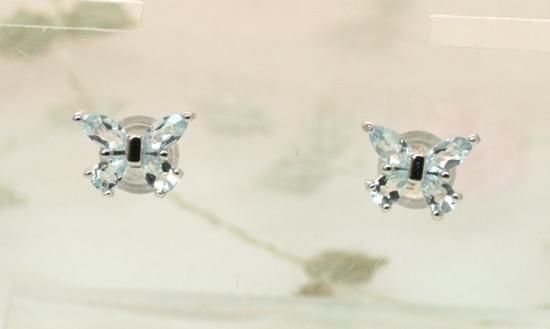 【出会い/いい知らせ/結婚運アップ】アクアマリン蝶々スタッフドピアス