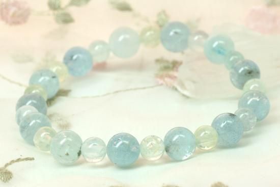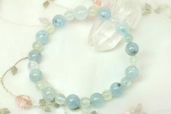 8mm玉と6mm玉の混合アクアマリンブレス。好きな人との関係を円滑にし、相手とのすれ違いや自爆を防ぎます。恋に疲れた心のヒーリング、結婚運・財運を高めたい方にも。ゆとり含め16cm。サイズ直しは+300円。1点のみのご提供です。