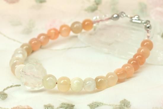 素材:オレンジムーンストーン、ホワイトムーンストーン6mm玉 水晶12mm玉多面カット