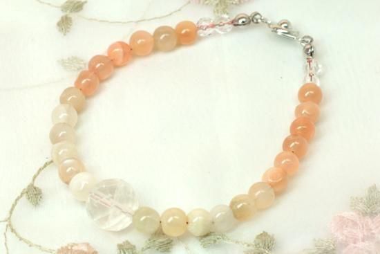 【出会い運/恋愛成就/結婚運アップ】オレンジ・ホワイトムーンストーン&水晶ブレスレット(16.5cm)
