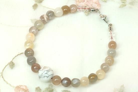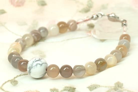 【メンタル安定/理想の相手を見つける】ハウライト&グレームーンストーンブレスレット(16.5cm)