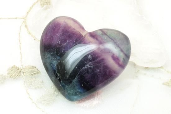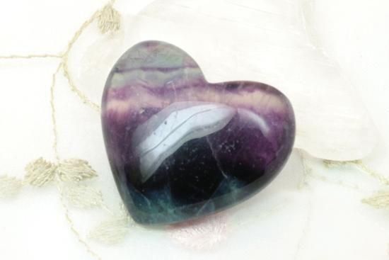 グリーンとパープルが混じり、両面の風合いが違う美しいフローライト。モテを得たい方、好きな人から選ばれたい方、嬉しいシンクロが欲しい方に。頭脳を明晰にするともされるので、受験のお守りにも。ハートは恋愛運全般をアップさせるモチーフ。持ち歩けるようポーチ付き。1点のみのご提供です。