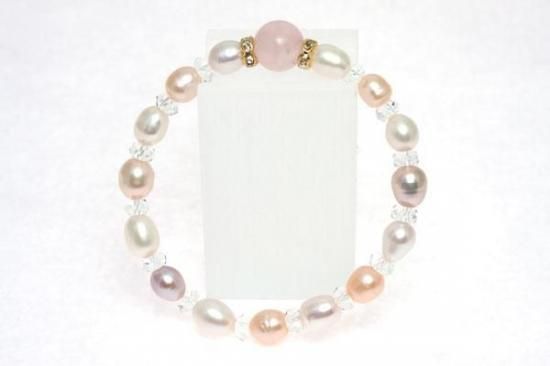 素材:ローズクオーツ10mm玉 淡水パール約9×7mm ボタンカット水晶