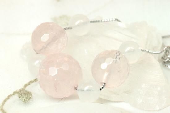 素材:ローズクオーツ10mm玉、8mm玉ミラーボールカット ムーンストーン6mm玉